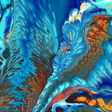 The intricately detailed design with bright turquoise hues and contrasting accents in gold, brown, and bronze highlights the dynamic currents, creating a mesmerizing depiction that captures the essence of flowing water.