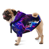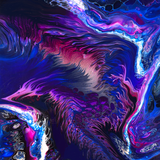 Dramatic tendrils of color cascade across this design, creating an enchanting dance that adds both depth and movement to this visually striking composition in rich shades of purple and pink with hints of blue.